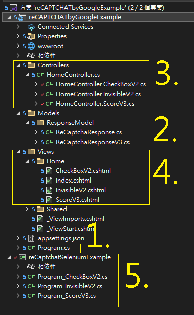 | 3. 控制器 | : | 分別實現 3 種 reCAPTCHA 驗證器 |