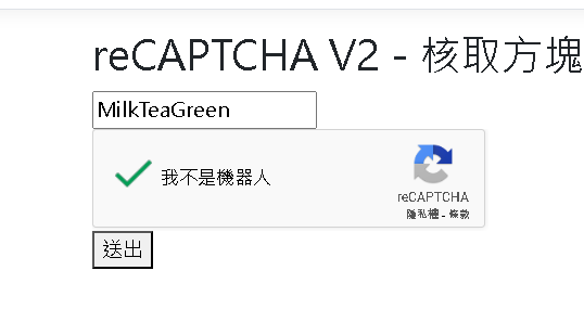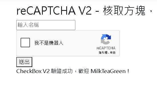 提供檢視、前端用戶點擊送出按鈕後,進行 reCAPTCHA 的 CheckBox V2 驗證