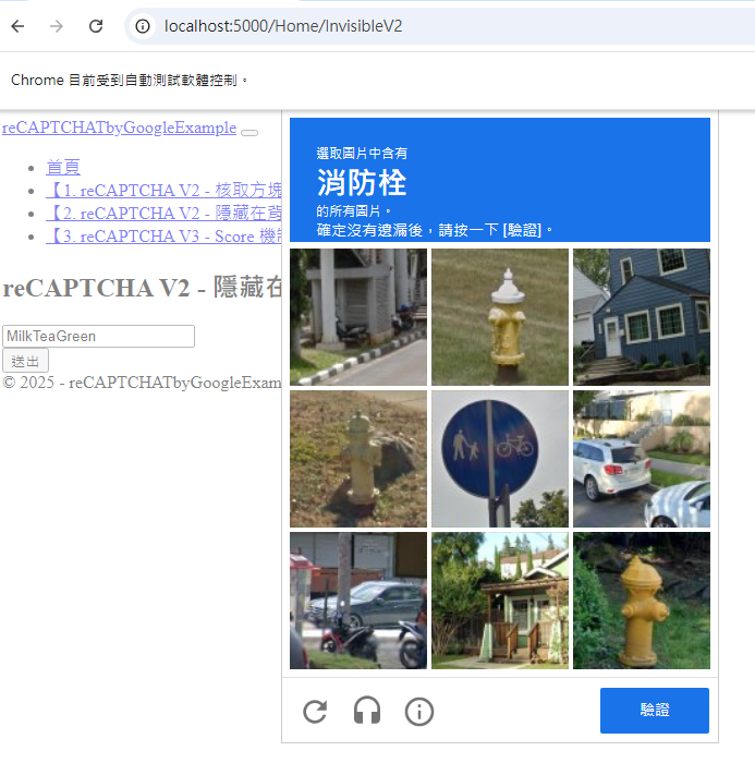 // 1. 進入 Invisible V2 驗證器測試頁面