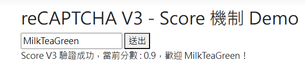 <h2>reCAPTCHA V3 - Score 機制 Demo</h2>