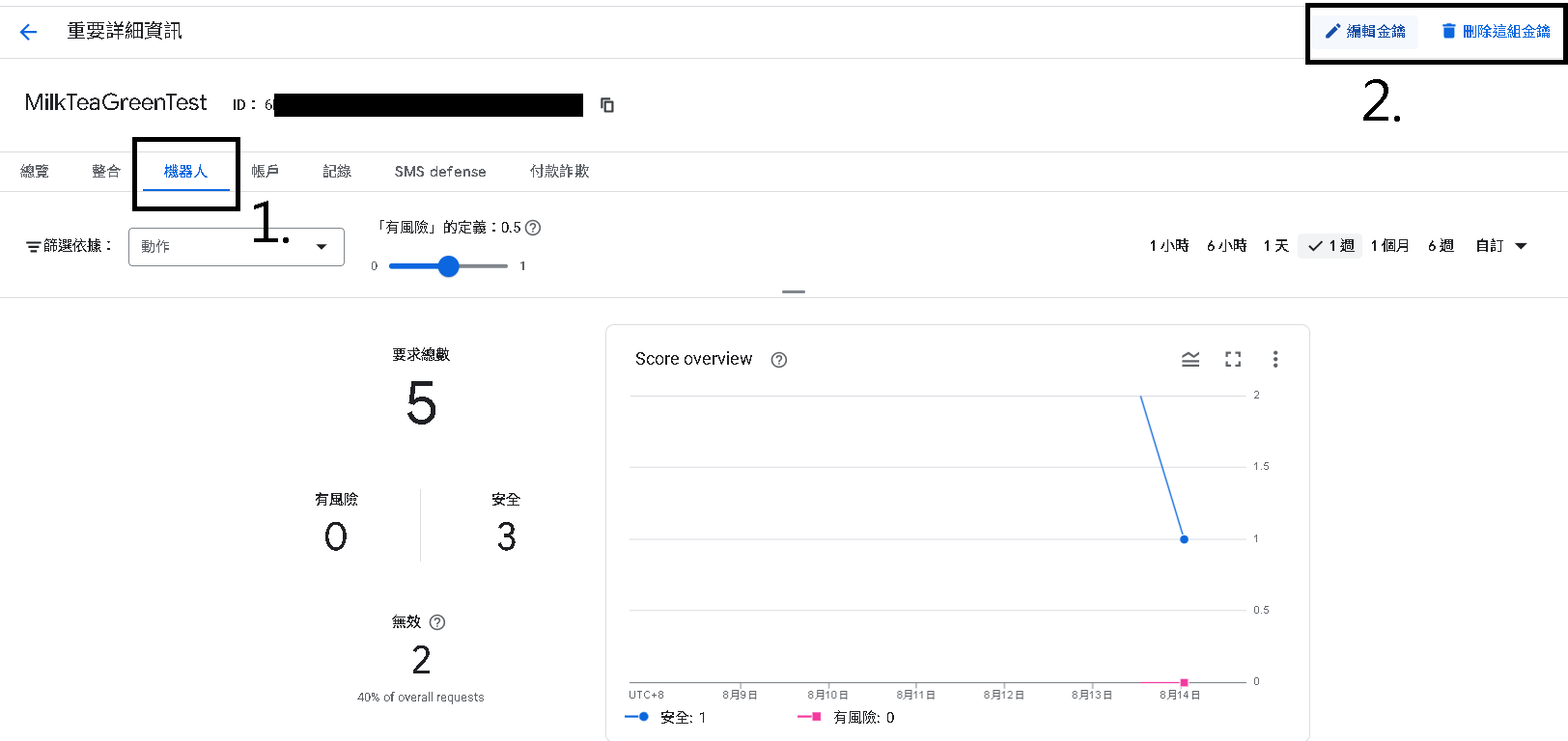 每把金鑰對應著不同的 reCAPTCHA 驗證器