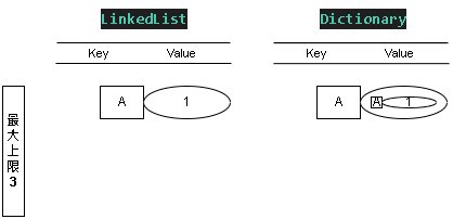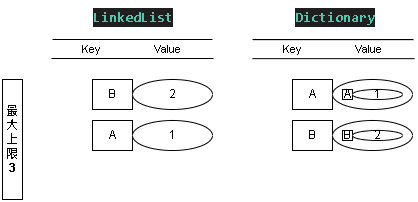 | 不存在 | 是 | 移除最舊的資料 + 新增 Key 的 Value 值 並且將權重往前(最高權重) |