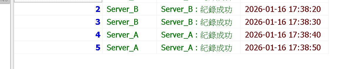 | 1. Server A | : | 17:40 拿到鎖,進入執行工作,1秒內順利執行完成 |