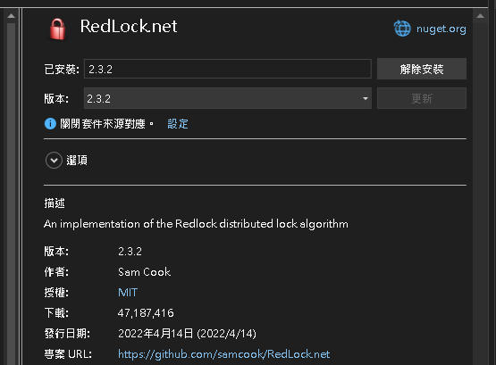 RedLock.NET 是一套開源庫,以下擷取自 RedLock.net Github