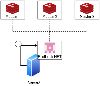 | 1. Server A 請求鎖 | 透過 RedLock.NET 成功取得,因為這時沒有任何鎖,並且 Server A 執行事務中, 不釋放鎖 |