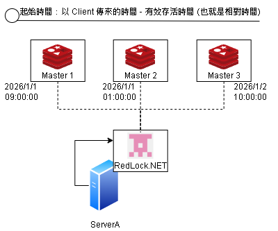 RedLock.NET 會以請求的 傳來的時間 並且減去 有效存活時間 (也就是相對時間),來做存活的判斷