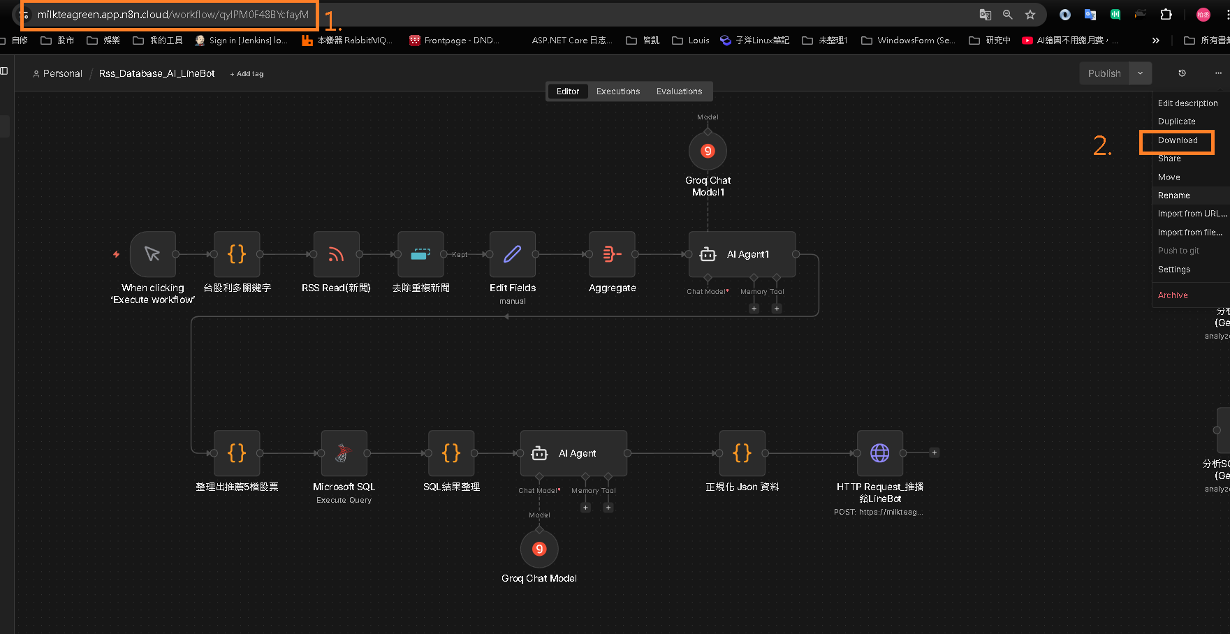 進入自己的 n8n 雲端服務,選擇 download 會得到 .json 檔案