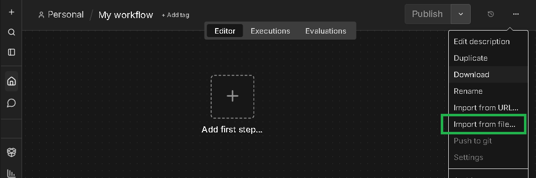 開啟一個空的 workflow -> 選擇 Import from file…