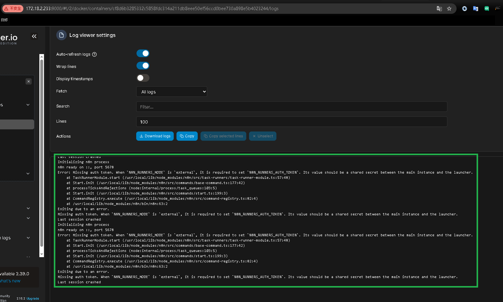 如果你沒有設定 N8N_RUNNERS_AUTH_TOKEN,且系統環境觸發了某些偵測機制,它就會報錯跳出。
