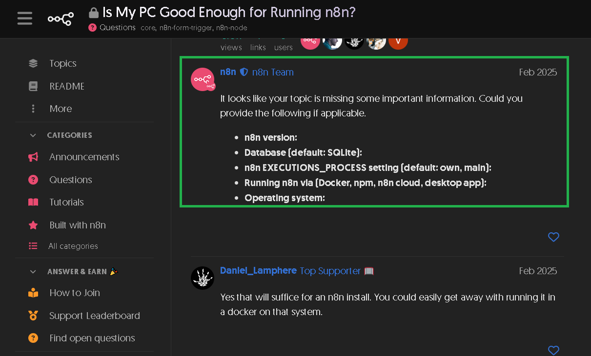 n8n community有討論過自架設 n8n 最低需求配置為何